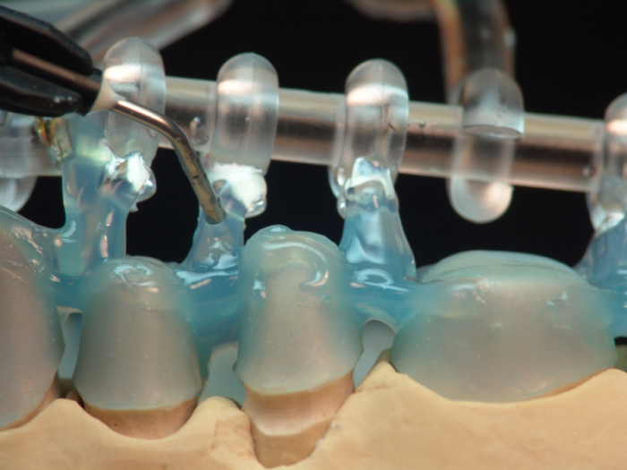 metablue is a light cured modeling composite gel from the syringe, that burns out cleanly and completely and is aligned specifically to be used with the metacon light cured wax system.