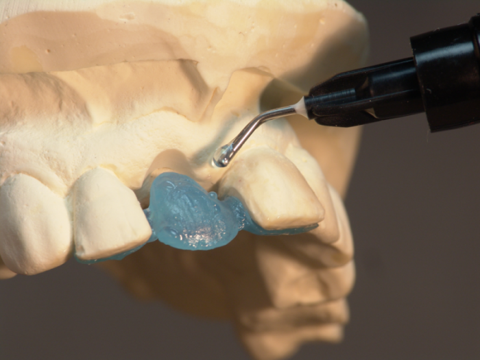metablue is a light cured modeling composite gel from the syringe, that burns out cleanly and completely and is aligned specifically to be used with the metacon light cured wax system.
