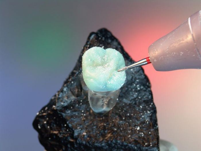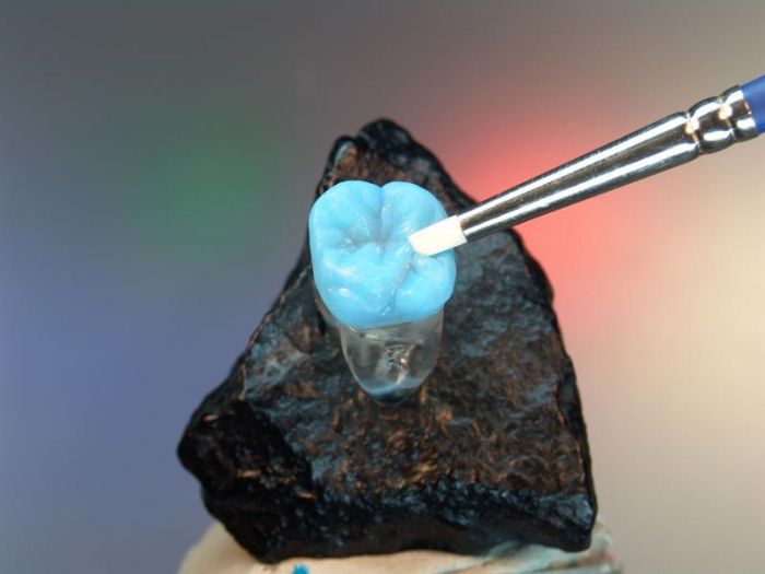 the very unique chemical formula of the Metacon wax ideally combines waxes, acrylics and photo-polymerising elements. Thus the material handles like wax before - and like acrylic after light curing