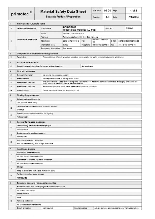 the new chemical composition of primobase substantially reduces the stickiness commonly known with this type of materials and greatly increases the curing and fitting properties