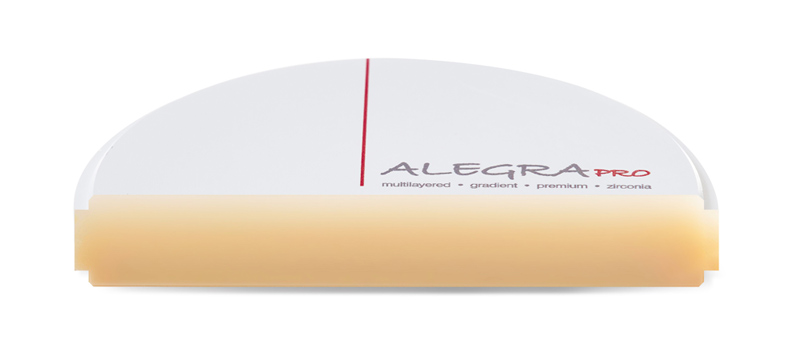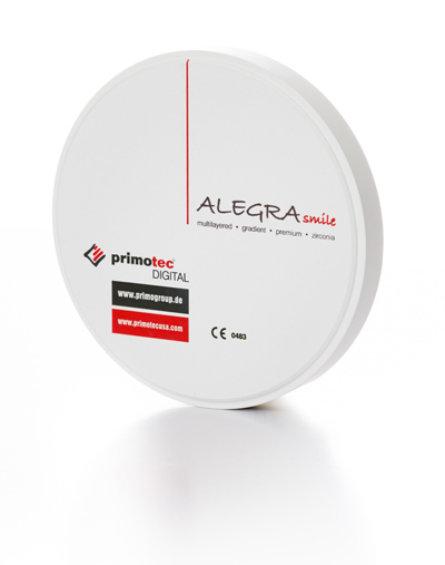 - Wenn es ästhetisch noch etwas mehr sein soll, dann kommt PREMIO Alegra SMILE zum Einsatz. Bei diesem Premium Material, das den Vergleich mit Lithiumdisilikat-Keramiken nicht scheuen muss, sind zwei der vier Alegra Gradienten noch mehr in Richtung Ästhetik optimiert.