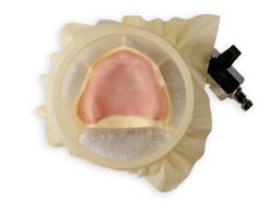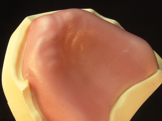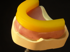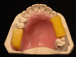 - Adaptieren Sie die primobase Basis Platte mit den Fingern auf das Funktionsmodell (ggf. im Kieferkammbereich durch leichten Druck noch etwas ausdünnen).