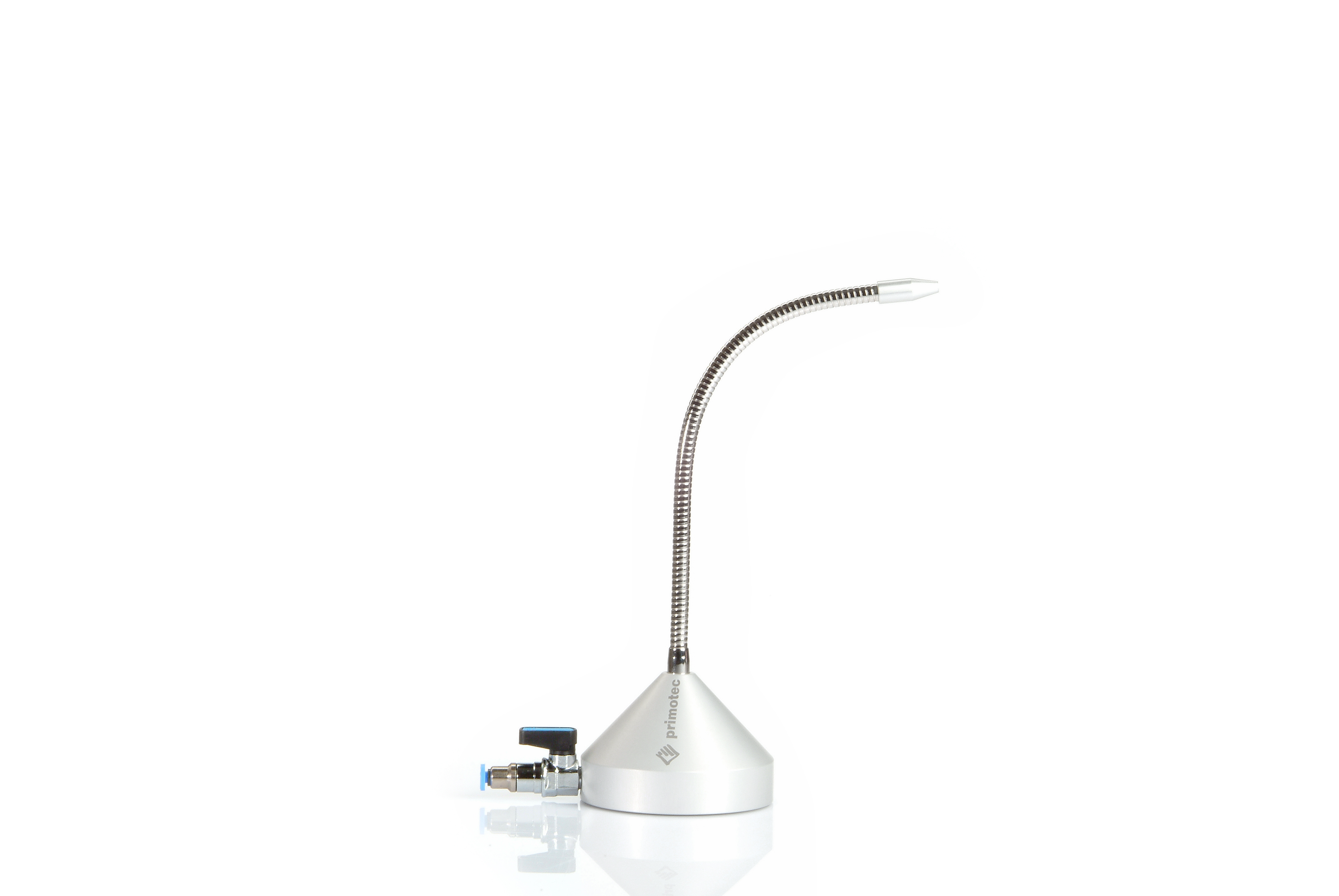 Druckluft, die durch den flexiblen Metallgelenkschlauch des Twister geführt wird, kühlt punktgenau das Werkstück und die Schleifkörper. Gleichzeitig sorgt der Twister für ein sauberes und staubfreies Arbeitsfeld.