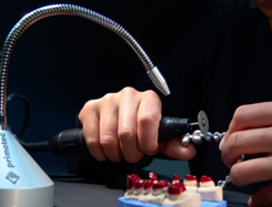 - immer freie Sicht – der Gipsstaub beim Freilegen von Präparationsgrenzen wird permanent weggeblasen