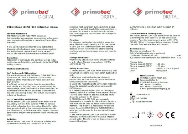with PREMIOtemp CLEAR FLEX we have added a new and very innovative milling blank for CAD/CAM milled nightguards to our primotec digital products portfolio.